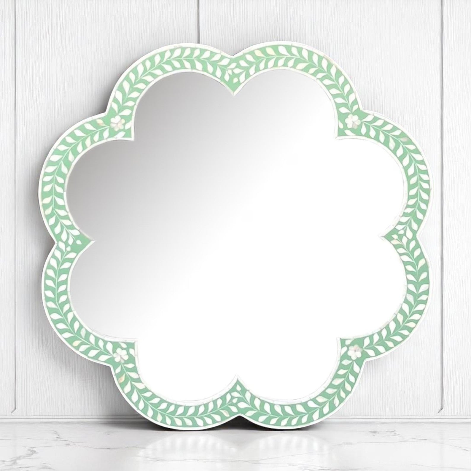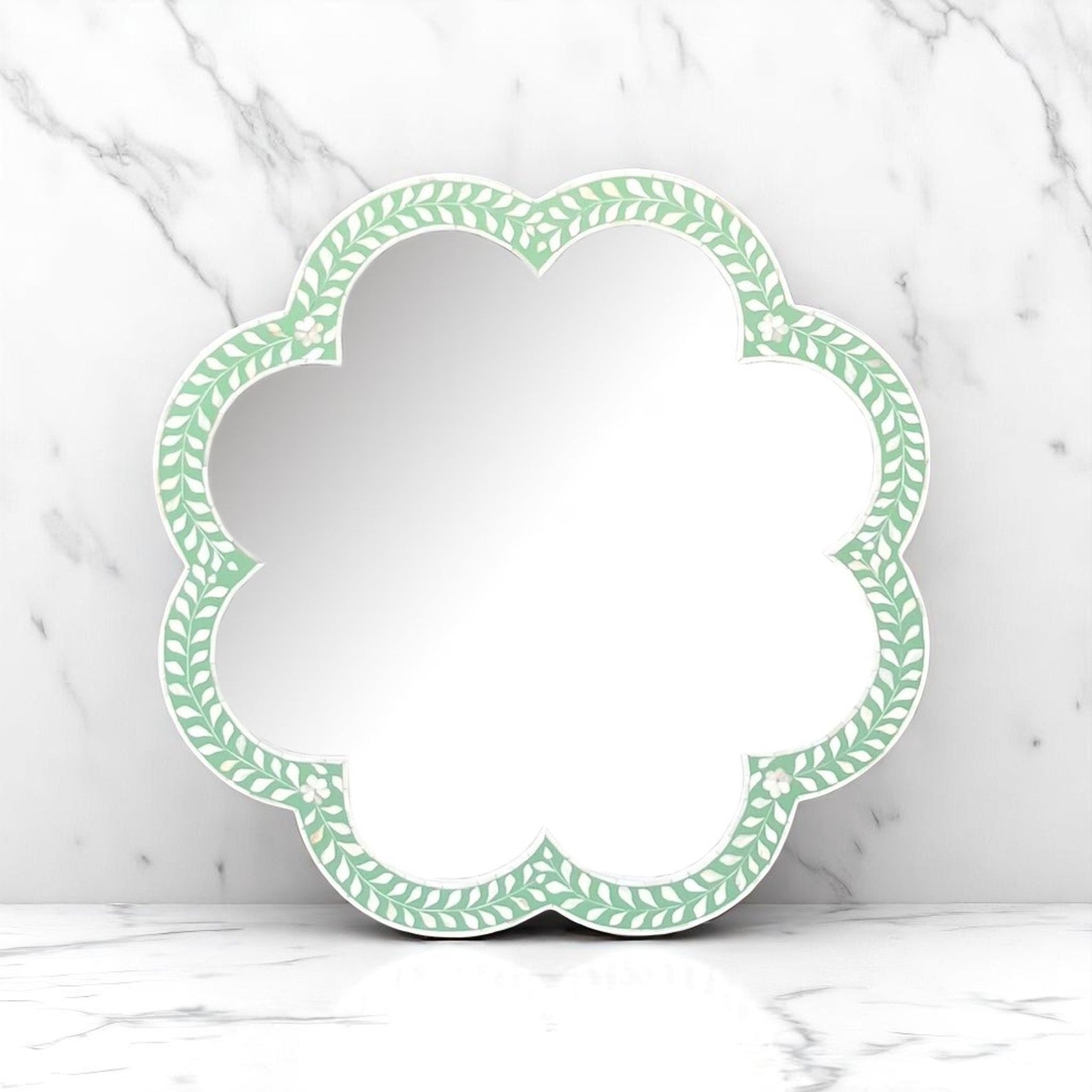Handmade Bone Inlay Modern Mirror Frame | Camel Bone & Wood Wall Decor by Hana Exports