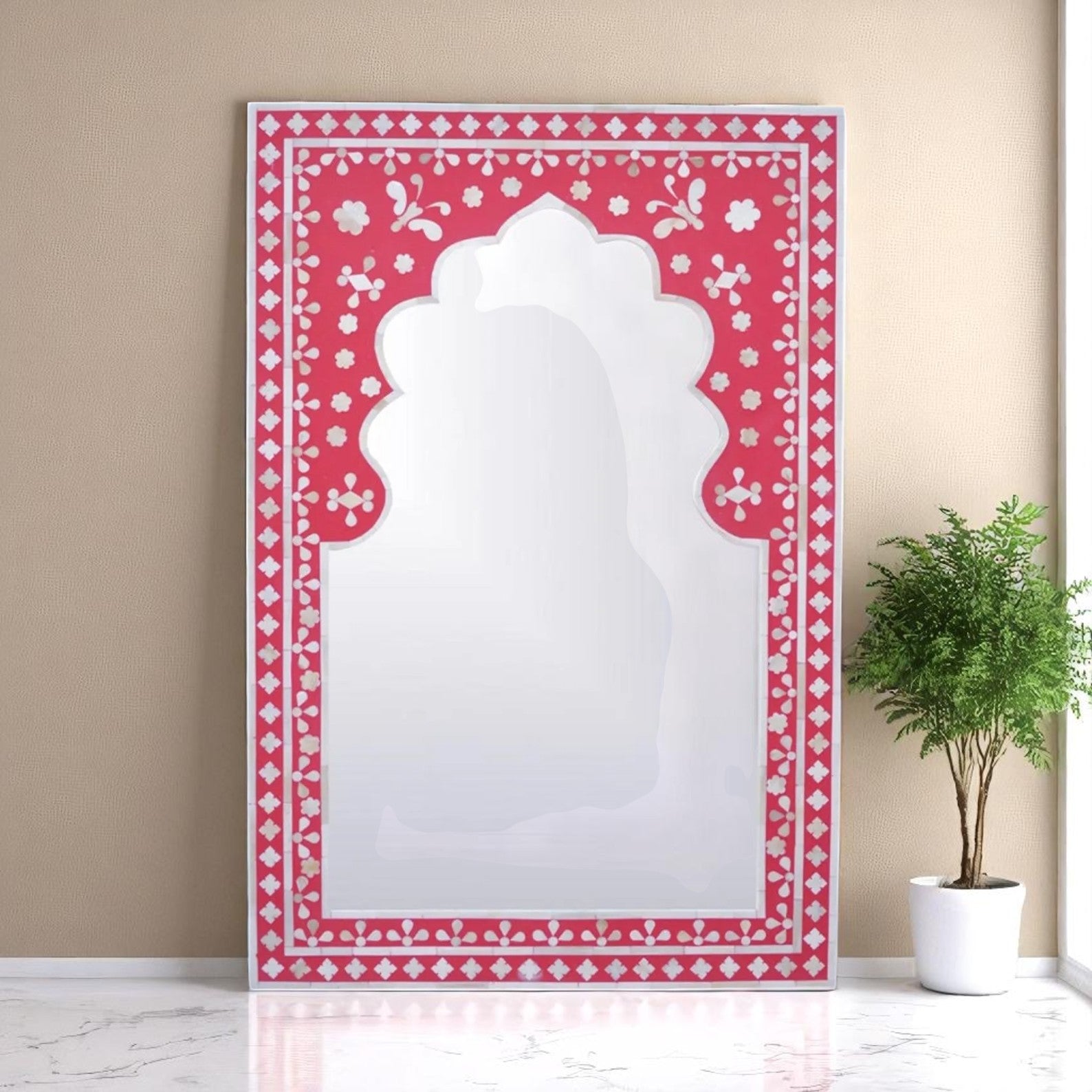 Handmade Bone Inlay Mirror Frame – Modern Pattern | Resin, Camel Bone & Wood by HANA EXPORTS